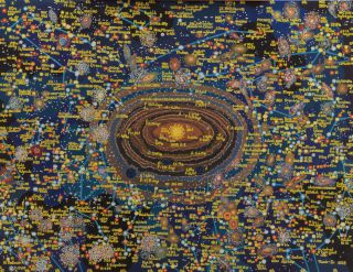 Prochainement les explications de cette œuvre seront sur le site : aller sur l’onglet « astronomie », puis sur le sous-onglet « exoplanètes » à : autour de HD-158259.